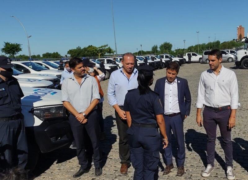 La entrega de 14 de patrulleros de parte del gobernador bonaerense, Axel Kicillof, y el ministro de Seguridad, Sergio Berni,…