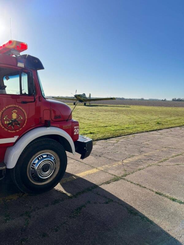 Personal de Bomberos de Ramallo trabaja intensamente en el abastecimiento de los aviones hidrantes que están operando sobre las islas del Delta, en la zona de San Nicolás, donde se registran focos activos de incendio.