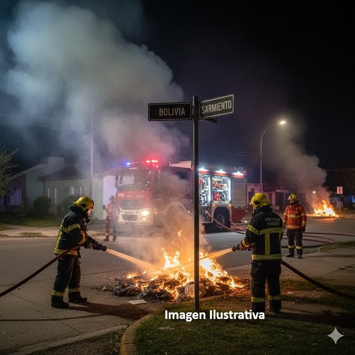 El primer hecho ocurrió ayer domingo a las 19:20 horas en la intersección de las calles Bolivia y Sarmiento, en Villa General Savio, donde una dotación trabajó para controlar las llamas y evitar su propagación.