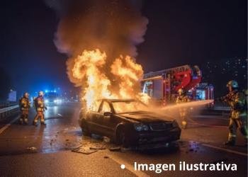 Tras recibir el llamado de emergencia, el Cuerpo de Bomberos Voluntarios acudió rápidamente al lugar, donde encontraron el vehículo completamente envuelto en llamas. El personal procedió a combatir el fuego hasta lograr su total extinción y control.
