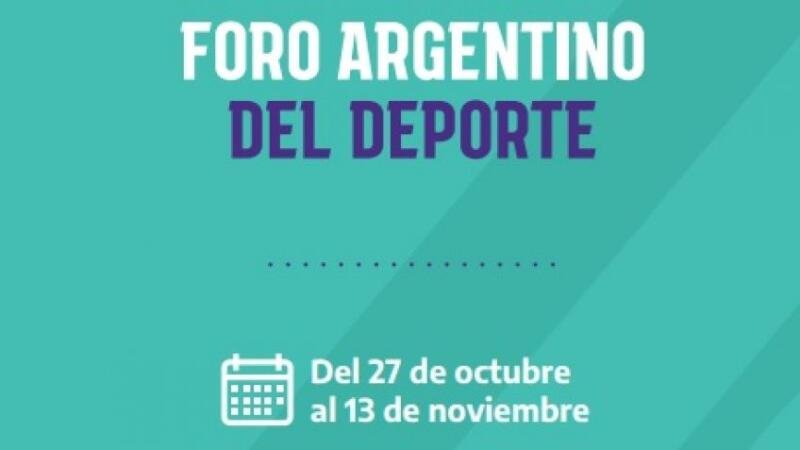 El Ministerio de Turismo y Deportes de la Nación llevará adelante el Foro Argentina del Deporte, un espacio para analizar los desafíos deportivos del país, que se transmitirá en vivo desde el YouTube de Deportes Argentina del 27 de octubre al 13 de noviembre.