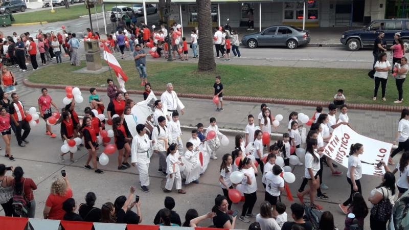 En el marco de varias actividades que buscan recuperar la mística histórica del club, centenares de deportistas recorrieron las calles de la localidad cabecera para mostrar las disciplinas que actualmente convocan a más de 400 chicos: Gimnasio de musculación, rítmica, danzas clásicas, baby fútbol, handball, vóley, judo, multideporte, boxeo, aikido, futbol de salón, adultos femenino, canotaje y colonia.