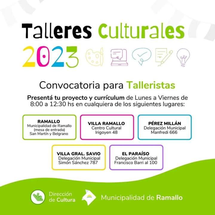 Desde la Dirección de Cultura se lanza la convocatoria para TALLERISTAS.