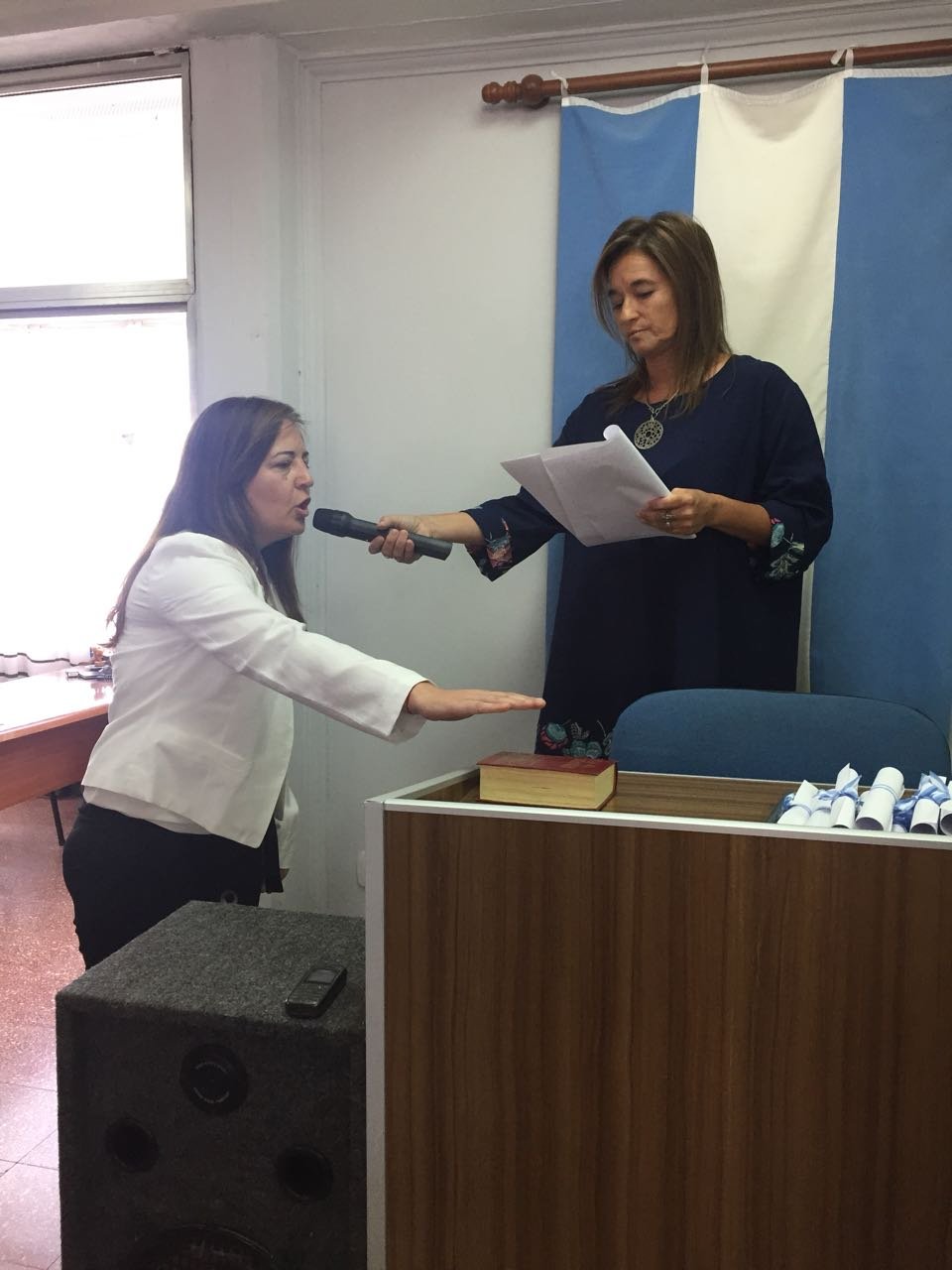 Adentro el recinto estuvo colmado y se vivieron momentos de griteríos. En medio de ese clima tomaron posesión los concejales Gustavo Perie, Sergio Costoya, Soledad Agotegaray y Mercedes Grilli, de Cambiemos. Silvia Di Bacco y Roberto Manccini de Unidad Ciudadana, y Maira Ricchiardelli y Diego Mendoza de 1Pais.