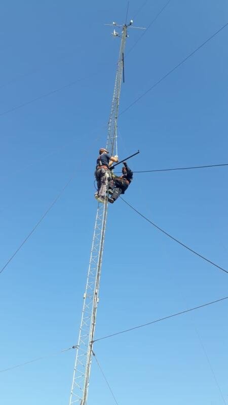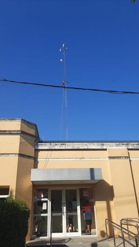 Los Bomberos Voluntarios de Ramallo realizaron la colocación de la atena radial VHF del Hospital Gomendio.