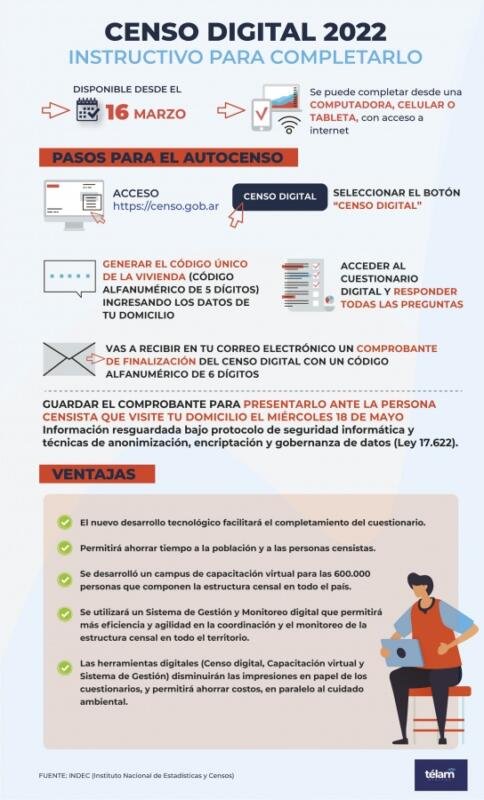 Hasta el miércoles 18 de mayo a las 8, todos los habitantes de la Argentina podrán autocensarse en el sitio oficial www.censo.gob.ar, lo que permitirá ahorrar tiempo tanto a la población como a las personas censistas.