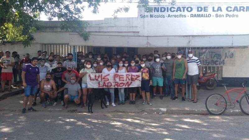 En horas de la mañana de este miércoles 3 de marzo, los trabajadores del frigorífico Arre Beef de Pérez Millán, se dirigieron hacia la sede del Sindicato de la Carne e hicieron la toma de la misma. Continúan exigiendo la renuncia del secretario general Luis Pérez, tras ser impedidos de participar de la mesa de negociación por carecer de representación sindical.