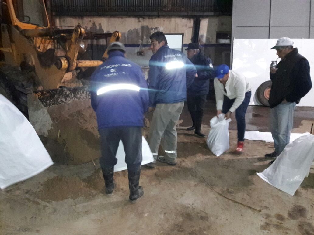 En Ramallo se repartieron bolsas de arena a partir de los pedidos que llegaran al Centro de Monitoreo y pedidos por redes sociales. Además se asistió a la familia Vello por la caída del cielo razo de su vivienda.