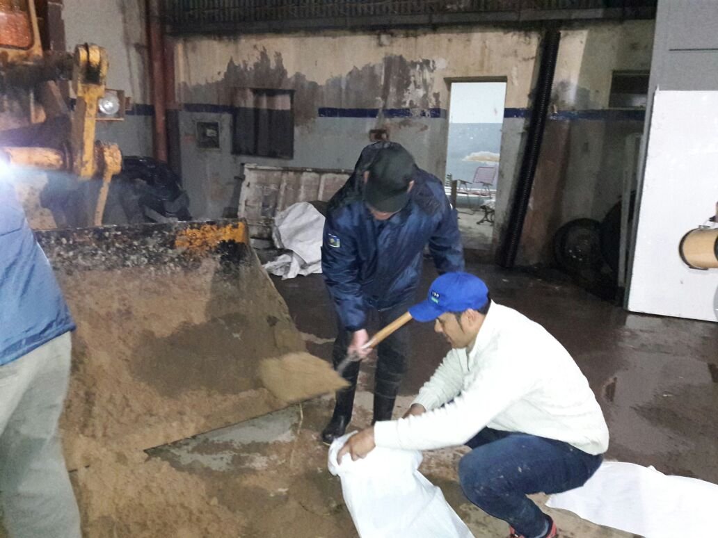 En Ramallo se repartieron bolsas de arena a partir de los pedidos que llegaran al Centro de Monitoreo y pedidos por redes sociales. Además se asistió a la familia Vello por la caída del cielo razo de su vivienda.