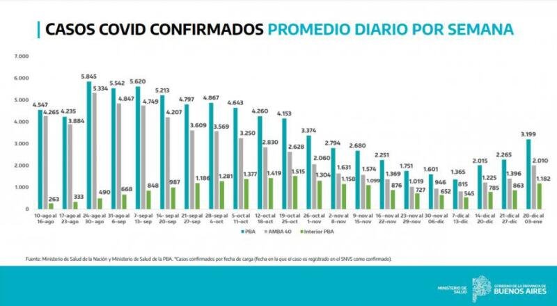 Aunque todavía no se reflejó de forma sensible en un aumento de la ocupación de camas de terapia intensiva y de fallecidos semanales, el Ministro de Salud bonaerense advirtió que “los casos de fallecimiento vienen posdatados dos o tres semanas respecto a los casos confirmados, con lo cual es probable que si seguimos con el aumento de casos, también tengamos lamentablemente un aumento en los fallecidos”.