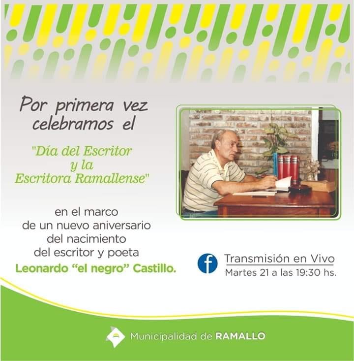 La Subsecretaría de Cultura impulsó el “Día del Escritor y la Escritora Ramallense” recordando a Leonardo “el negro” Castillo. Es por ello que hoy homenajeamos a todos los escritores y las escritoras de nuestro terruño.