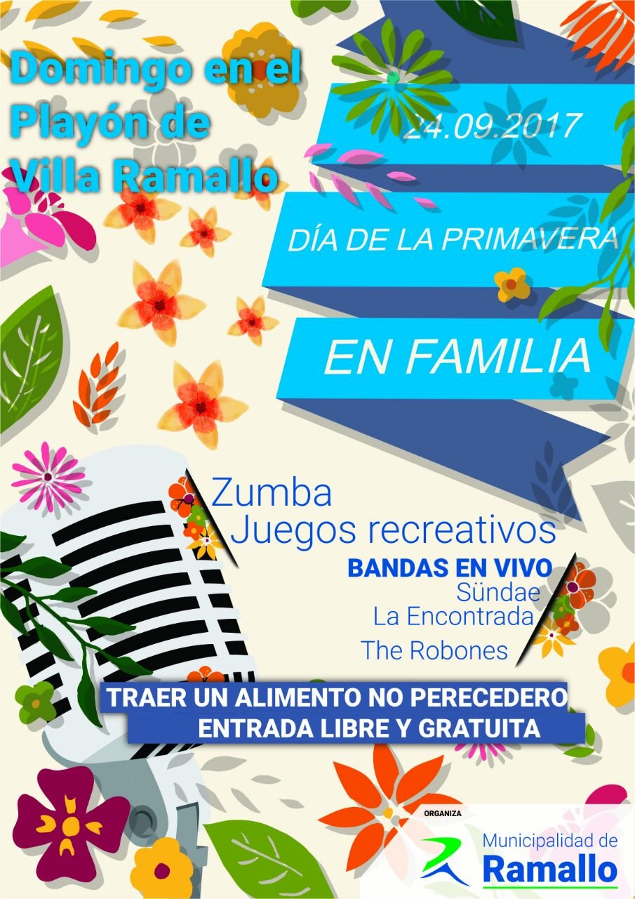 La subsecretaria de Deportes y la Dirección de Juventud de la Municipalidad de Ramallo invitan a las familias a participar de los festejos del Día de la Primavera en el Playón de Villa Ramallo.