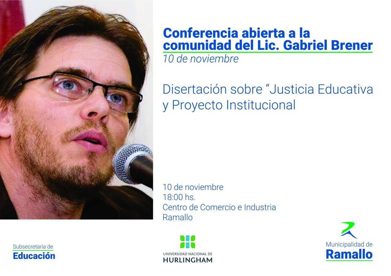 El especialista en conducción del sistema educativo, Lic. Gabriel Brener, brindará una charla este viernes 10 de noviembre a las 18 Hs en el Centro de Comercio de Ramallo.