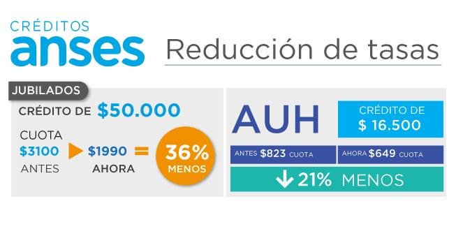 Los jubilados que tomaron créditos de la ANSES verán reducida la tasa de interés nominal anual máxima del 42% al 31,5%, en tanto que los beneficiarios de AUH y SUAF tendrán una reducción de la tasa nominal anual máxima del 48% al 36%.