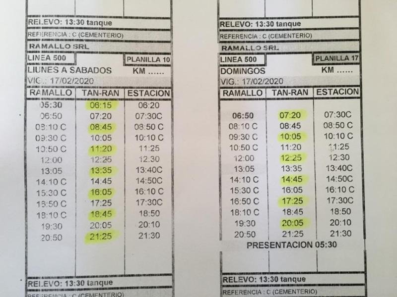 En tanto, la Linea Ramallo Perez Millan se suspende los servicios de las 5:30 y 19:30 hs desde Ramallo; y de las 7:30  y 21 hs de Perez Millán. Los demás horarios normales.