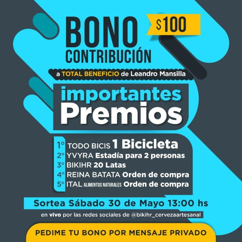Los detalles son innecesarios. La rifa es iniciativa de amigos de Leo, y será entregada a la familia. Los bonos los pueden pasar a comprar por Radio NBA, desde hoy miércoles después de las 17 hs, jueves, viernes, sábado y la próxima semana. CUANTO ANTES AYUDEMOS, MEJOR.