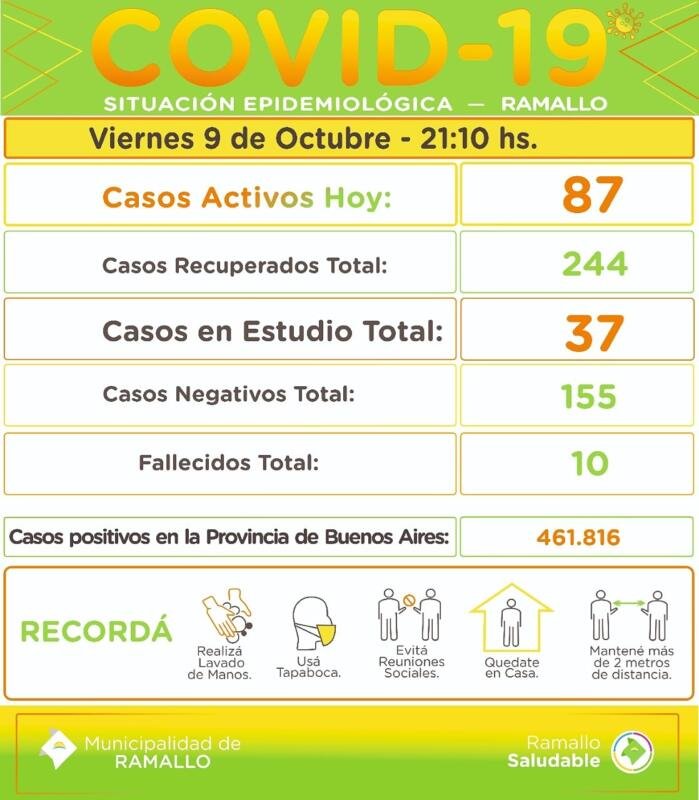 Nuevamente se reporta un número alto de contagios diarios en Ramallo. En esta oportunidad serían 20 nuevos positivos de los cuales 14 corresponden a hisopados en laboratorio privado y 6 en el hospital. La actualización de la situación epidemiológica en el Partido de Ramallo queda de la siguiente manera: