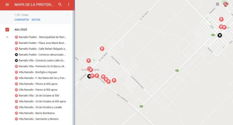 Anexamos enlace al mapa actualizado de Pirotecnia Cero Ramallo que ya tiene más de “1.600 visitas” en el cual se puede apreciar las direcciones aproximadas donde se registraron los eventos pirotécnicos de noche buena y navidad.