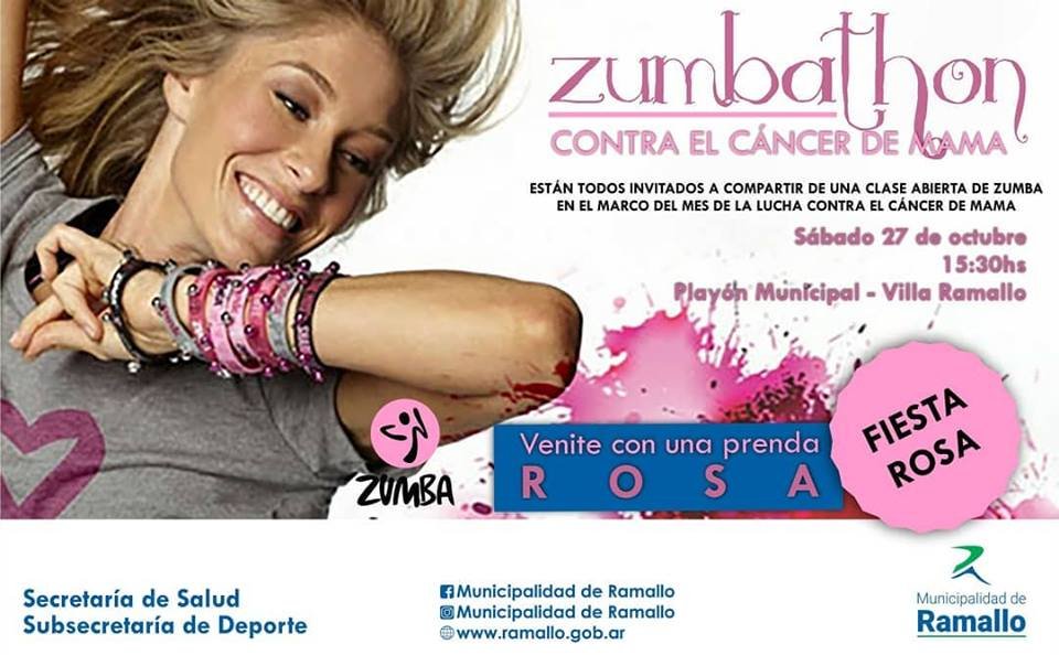 Este sábado 27, desde las 15:30hs, en el Playón Municipal de Villa Ramallo, se realizara una Zumbathon contra el Cáncer de Mama.