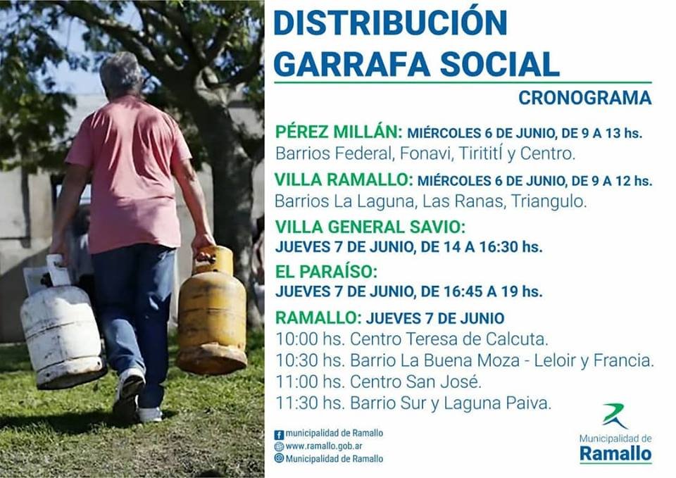 La Secretaría de Desarrollo Humano informa a la comunidad de Ramallo que en el mes de junio comienza el reparto de la garrafa social. La misma está destinada a familias de escasos recursos y tendrá un costo de $ 220.