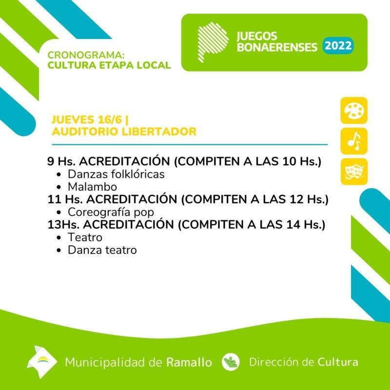 MUNICIPALES Juegos bonaerenses 2022 Cronograma etapa local de Cultura Por GABY martes 14 junio, 2022 martes 14 junio, 2022 bonaerenses 2022 compartir 0 FacebookTwitterWhatsappTelegramEmail Posteo anterior Continúa el paro de médicos en el Hospital Gomendio Proximo posteo Se lanzó el Concurso de Vidrieras Argentinas Te podría interesar Ramallo recibe a más de 500 deportistas para los Juegos Universitarios de Playa. miércoles 11 marzo, 2026 Nueva Obra Hídrica para Ramallo y Villa Ramallo miércoles 11 marzo, 2026 Incentivos para la educación rural: entregan botellas térmicas, dispensers y maquinaria para el mantenimiento... miércoles 4 marzo, 2026 El Parador Municipal fue el escenario principal para el cierre del ciclo “Ramallo Suena”. martes 3 marzo, 2026 Los gremios municipales cerraron la paritaria 2025 en paridad con la inflación jueves 12 febrero, 2026 Carnavales en Ramallo y Villa Ramallo lunes 9 febrero, 2026 Villa General Savio: mantenimiento en barrios y llega el LED lunes 9 febrero, 2026 Llegó el LED a Villa Ramallo: comienza el recambio total domingo 8 febrero, 2026 El Municipio interviene baldíos y traslada el costo y multas a los propietarios. jueves 29 enero, 2026 Nuevas mesas y sillas para las Escuelas de Ramallo miércoles 28 enero, 2026
