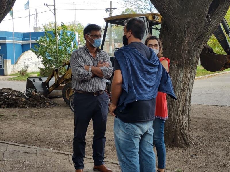 El intendente Gustavo Perié recorrió algunas obras que se están realizando en Pérez Millán con el delegado Juan Pablo Díaz y la Subsecretaria de Obras y Ordenamiento Urbano Florencia Lima y observó el avance del recambio de luminarias y mejoras de la plaza principal de la localidad.