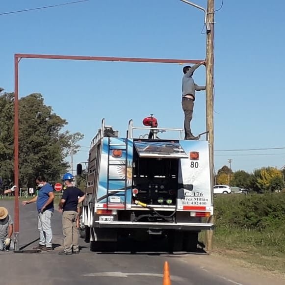La Delegación Municipal de Pérez Millán, conjuntamente con la Sociedad de Bomberos Voluntarios, llevaron adelante el proyecto de construcción y puesta en marcha del “Arco de Sanitización de Vehículos” colocado en el ingreso principal de la localidad.