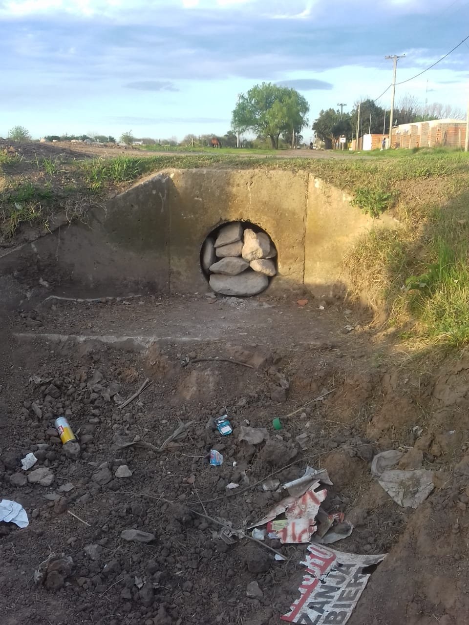 Evidentemente es algo intencional como esta acomodado, son piedras grandes. A mi humilde entender lo ha realizado una persona adulta, con cierta fuerza. Porque estamos hablando de una boca calle, un caño considerable y unas piedras de envergadura importante. Esto no fue una obra de chicos. Esto evidentemente es intencional. Puede haber desacuerdo políticos, desacuerdo en la gestión, pero acá claramente hay un atentado contra la población. Se está en contra de la población. Porque si bien al producirse una inundación implicaría alguna que otra putiada hacia la actual gestión o alguna que otra autoridad, en definitiva no hay que pensar mucho. Se está atentando contra el pueblo de Sánchez, porque si se inunda, es doña Rosa quien luego tiene el agua en la casa. Más teniendo en cuenta que se trata de una obra que significo un millón trecientos mil pesos. Una obra hídrica importantísima e histórica en Sánchez, que se logró con mucho esfuerzo, en una época económicamente difícil del país y la verdad que este hecho es muy lamentable y repudiable. Quien hizo esto, es una persona inescrupulosa y que no mide las consecuencias.