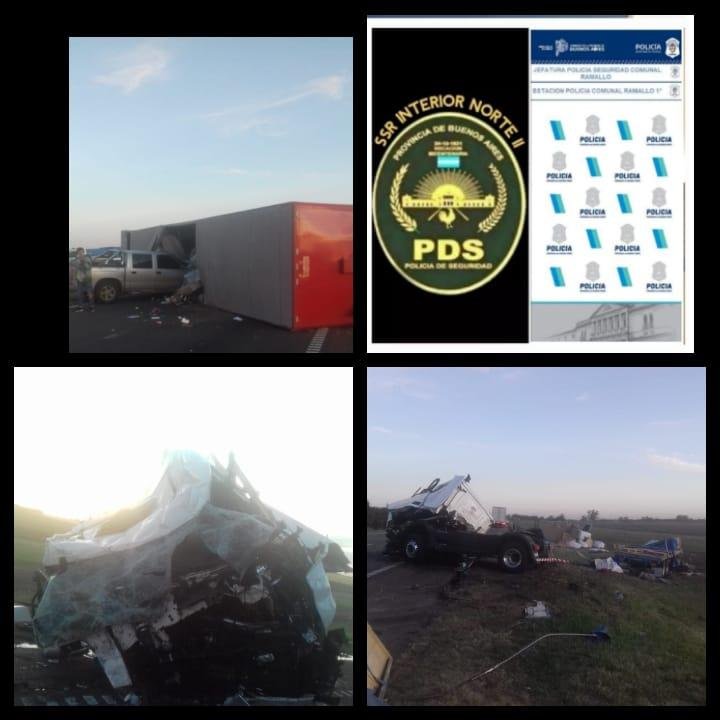 El camión semi remolque de la marca Scania que circulaba por carril Buenos-Rosario, roza a un automóvil marca Fiat Adventure, el rodado de mayor porte cruza hacia el carril contrario e impactó contra un camión con chasis y acoplado de la marca Mercedes Benz, cargado con bolsones de porotos, que quedó volcado en un costado, mientras que camión Scania vuelca sobre el carril Rosario-Buenos Aires, que luego es enbestido por Pik-up Chevrolet S10.