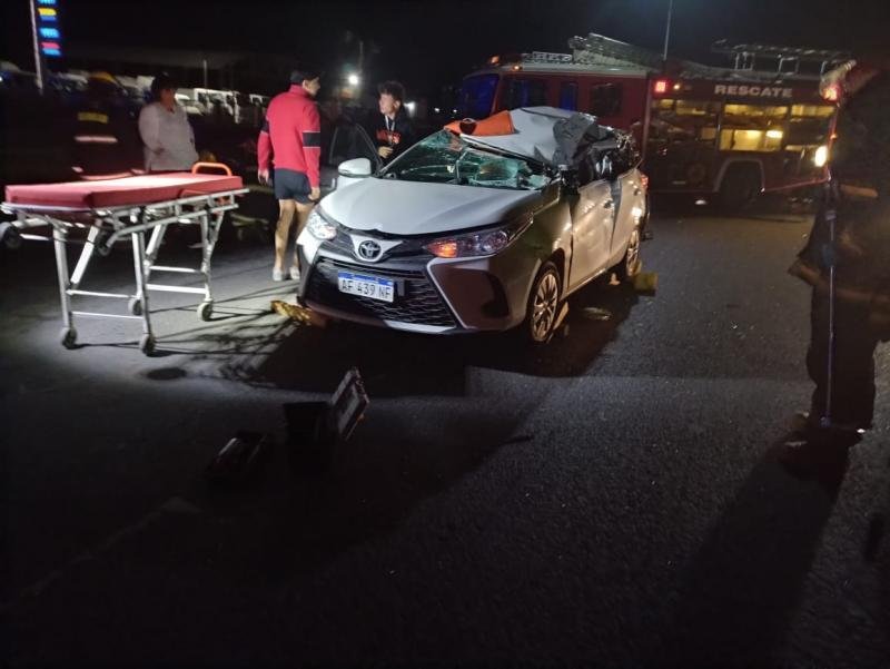 En la madrugada del día de hoy, por razones que se tratan de establecer, en Ruta N° 9 km 205, mano Buenos Aires – Rosario, se produce colisión de automóvil TOYOTA YARIIS, color blanco el cual era conducido por un hombre de 56 años de edad, quien iba acompañado por su hijo también mayor de edad (19), ambos oriundos de la localidad vecina de San Nicolás, aparentemente contra un vehículo de mayor porte, el cual no se hallaba en sitio de los hechos.