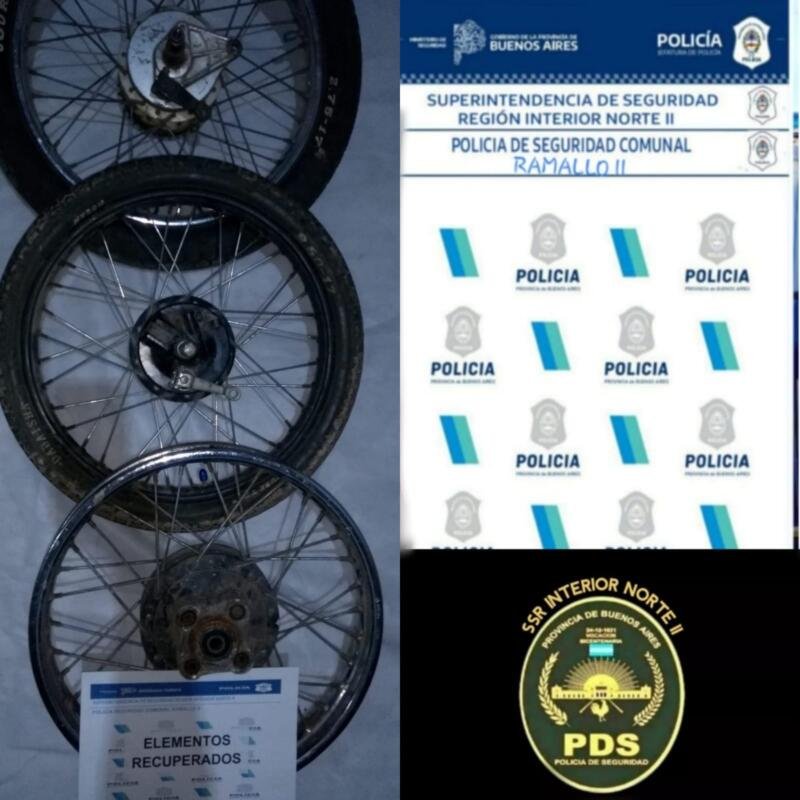 Personal G.T.O. de Est. Policia Comunal Ramallo Segunda, lleva a cabo tareas de campo elevando carpeta investigativa a magistrado de intervención (U.F.I. 3 Deptal.) solicitándose Orden de allanamiento para con un domicilio sito calle Silva S/N de Villa Ramallo. Otorgado en la fecha por J. Gtias. Nro. 01 Deptal., es ejecutado arrojando diligencia resultado POSITIVO secuestrándose tres llantas de motocicleta (dos con sus respectivos neumáticos).-
