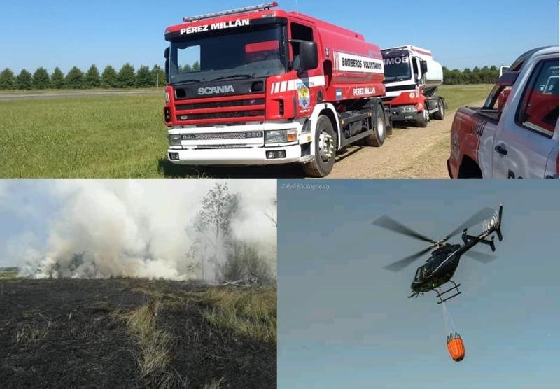 Los Bomberos Voluntarios de Pérez Millán fueron solicitados para colaborar en un incendio de pastizales en la zona de Alsina, Baradero.