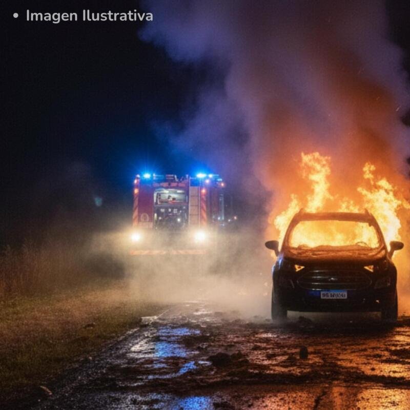 El cuartel recibió el llamado de emergencia a las 00:06 horas, reportando un vehículo en llamas en la Ruta 1001, cercano a la localidad de El Paraíso. Al llegar al lugar, el equipo encontró una camioneta Ford Ecosport completamente envuelta en fuego.