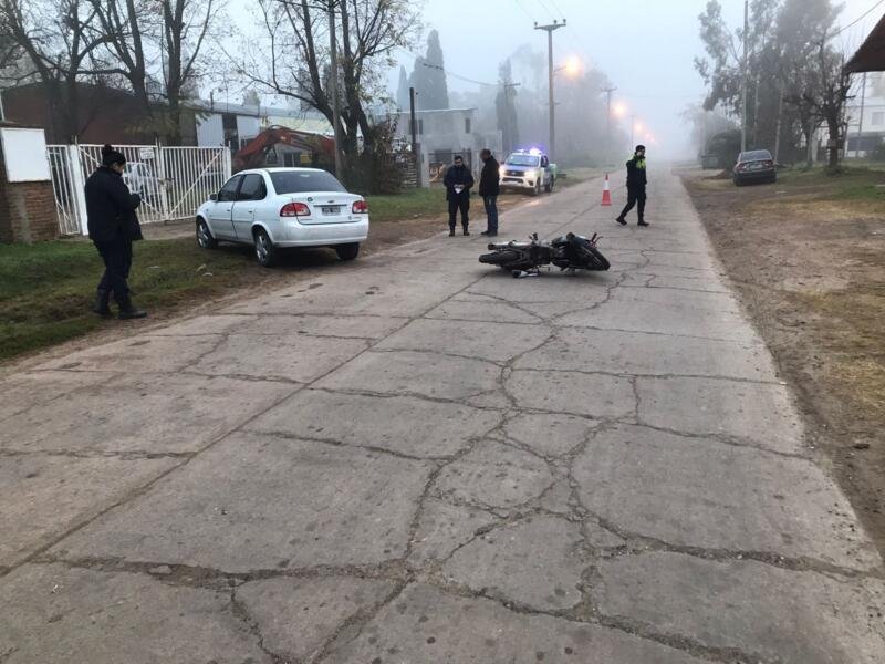 En el dia de ayer 09 de Junio siendo las 08:20hs por razones que se tratan de establecer en intersección de Av. Dusso y Velazquez, una Motocicleta marca: Corven, Dominio: 159INN, conducido por Masculino mayor de edad (36) coliciona contra un automóvil marca Chevrolet Corsa dominio JYO066 conducido por Masculino (55) todos oriundos de esta localidad. Presente en el lugar ambulancia de bomberos Móvil 20 a cargo de Subayudante Doblores realizan traslado de conductor de motovehiculo a Hospital José Maria gomendio de Ramallo.-Se solicito Policia cientifica.- personal de Nosocomio local dictaminó lesiones de carácter graves