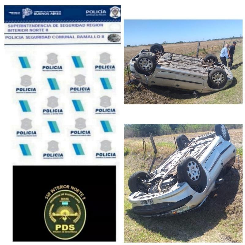 Ese mismo dia a las 13:00 hs por razones que se tratan de establecer Av. Savio y entrada Comirsa (PYMES I) un automóvil marca Chevrolet Corsa color gris volcó tras haber colisionado con una columna de alumbrado público, obstruyendo cinta asfáltica. Los dos ocupantes un hombre de 38 años y su acompañante hombre de 31 añosl se hallaban fuera del habitáculo a la llegada de personal policial . Se hace presente la ambulancia local, no constatando lesiones, ambos ocupantes no desean intervención policial. Asimismo se inician actuaciones por infracción ley 24449 por carecer de documentación correspondiente para su circulación, con intervención de Juzgado de Faltas Ramallo. Se retira vehículo quedando inerte a un costado de vía pública.