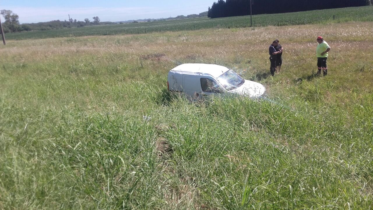 Esta mañana Bomberos Voluntarios fue alertado del vuelco de una Renault Kango en la Ruta 9 a la altura del km 199, en el carril sentido Bs. As.-Rosario.