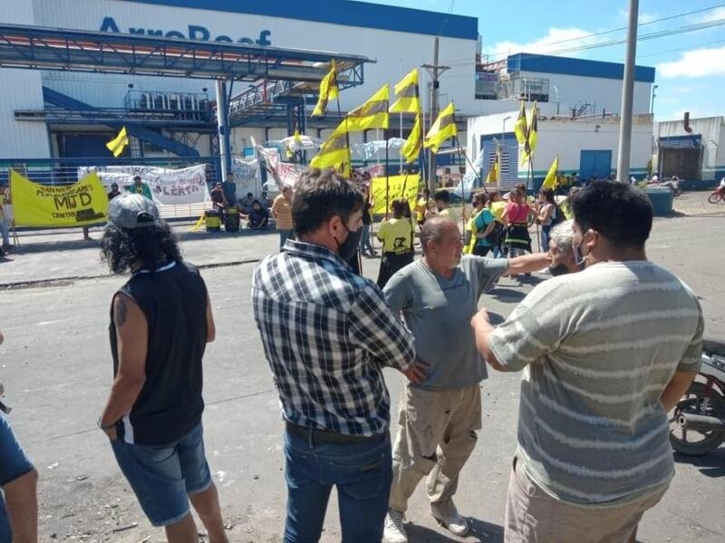 Este viernes distintas agrupaciones políticas identificadas con el peronismo estuvieron presentes junto a los trabajadores del frigorífico ArreBeef en Pérez Millán.