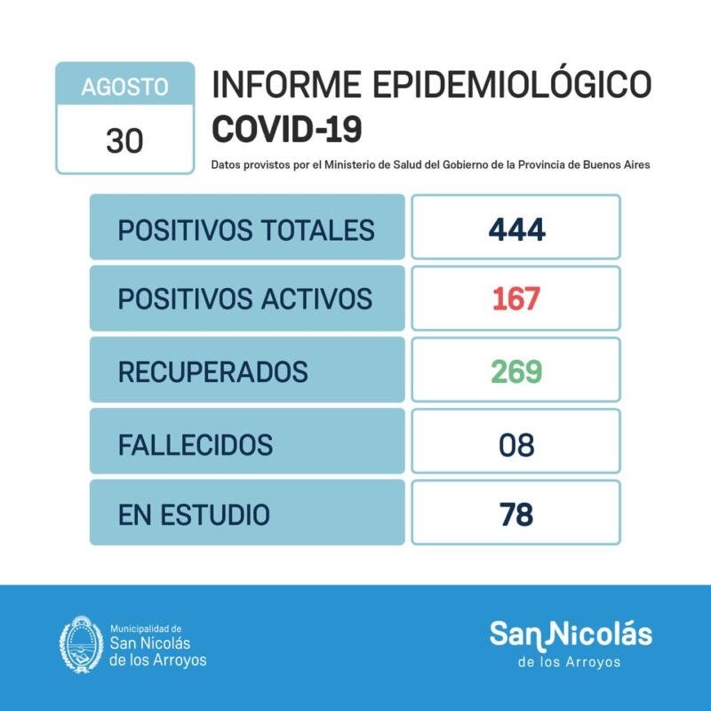 En la noche del domingo 30 de agosto, las autoridades sanitarias locales recibieron el resultado enviado por el Ministerio de Salud de la Provincia que indica 13 nuevos casos positivos de coronavirus en San Nicolás. Por otro lado, 15 pacientes recibieron el alta médica.