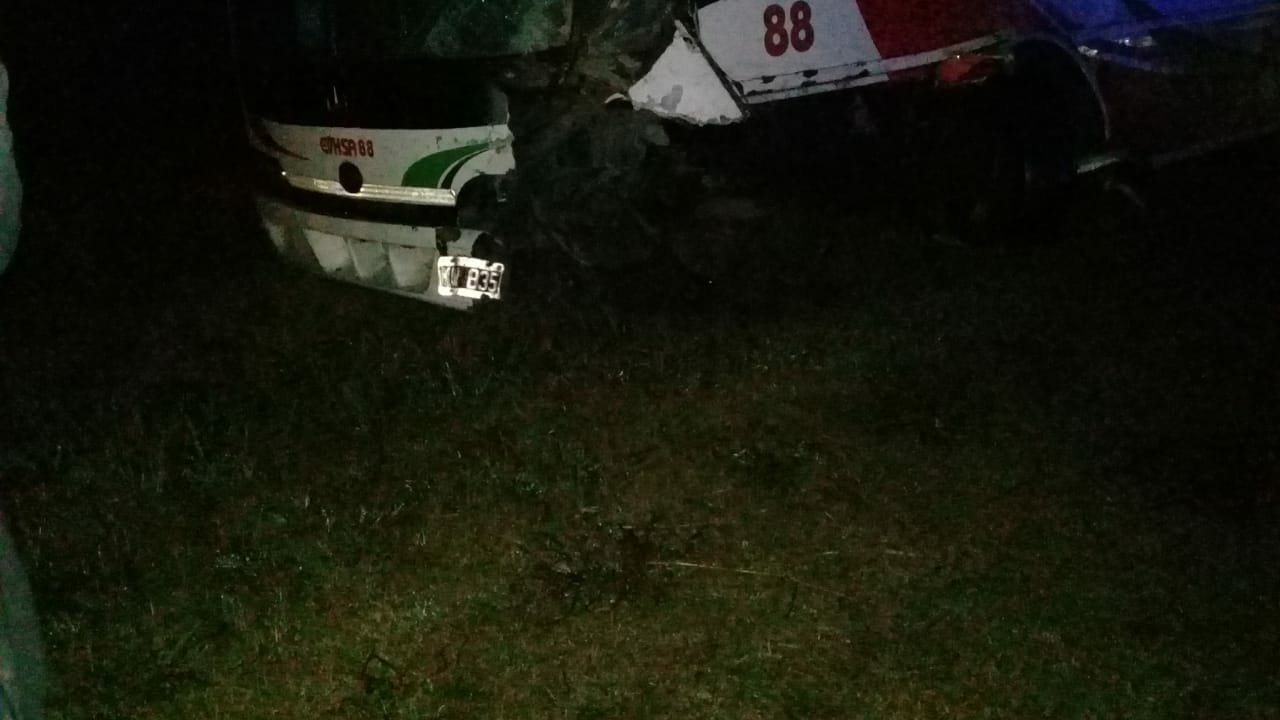 El accidente habría ocurrido sobre ruta 188 mientras este transporte se encontraba haciendo su recorrido habitual donde, por razones que aún no fueron establecidas el vehículo, terminó incrustado debajo de la zona delantera del colectivo correspondiente a la línea 500 de San Nicolás.
