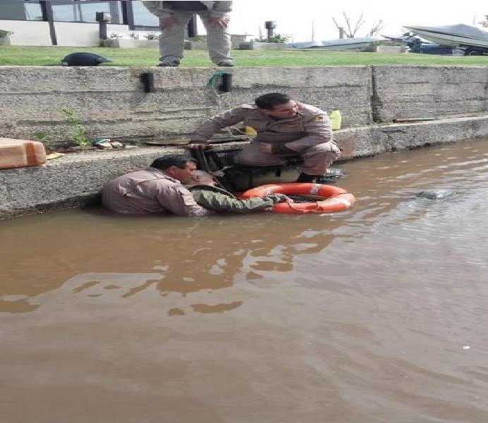 Los suboficiales Juan Ferreyra y Diego Gómez escucharon los pedidos de auxilio e inmediatamente se dirigieron al lugar. Al llegar al muelle los efectivos los efectivos advirtieron que el hombre se encontraba totalmente sumergido en el agua sin lograr hacer pie. Rápidamente se arrojaron al agua y lograron rescatarlo.