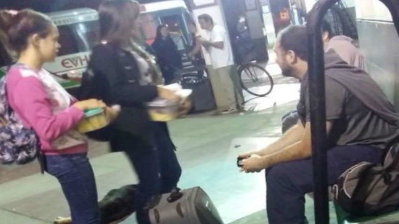 – En Plaza Sarmiento y Mitre se repartió café y cosas dulces.