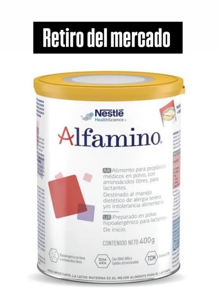 La ANMAT informa a la población que la empresa Nestlé Argentina S.A. inició un retiro voluntario y preventivo del mercado de determinados lotes de productos destinados a lactantes. Los productos afectados son: