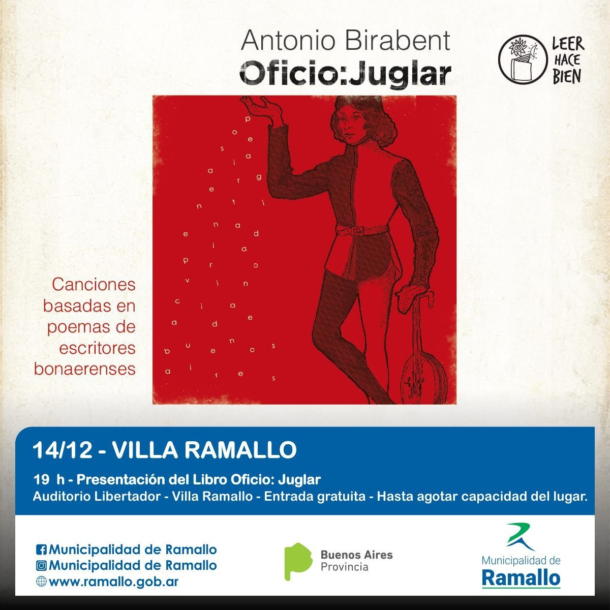 La Subsecretaría de Cultura invita a la comunidad a la presentación del disco Oficio: Juglar de Antonio Birabent el 14 de Diciembre a las 19hs en el Auditorio Libertador.