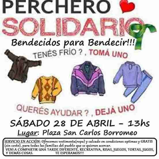 El sábado 28 de abril, a partir de las 13 hs en la Plaza Central de Pérez Millán un grupo de personas de Iglesia Gran Rey va a estar llevando a cabo el proyecto “Perchero Solidario”.