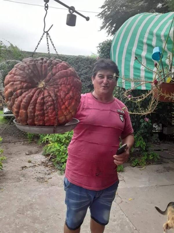 El vecino de la localidad de Pérez Millán describió que “de esas semillas nacieron dos plantas, las cuales tienen hoy cerca de 40 zapallos. El primero que ha madurado es el de la foto, los otros aun no los hemos cosechados, les falta un poco. Pero por los tamaños que vemos calculamos que estos otros van a llegar a pesar un poco más, entre 12 o 15 kilos” culmino Don “Chengo” José Gélvez.