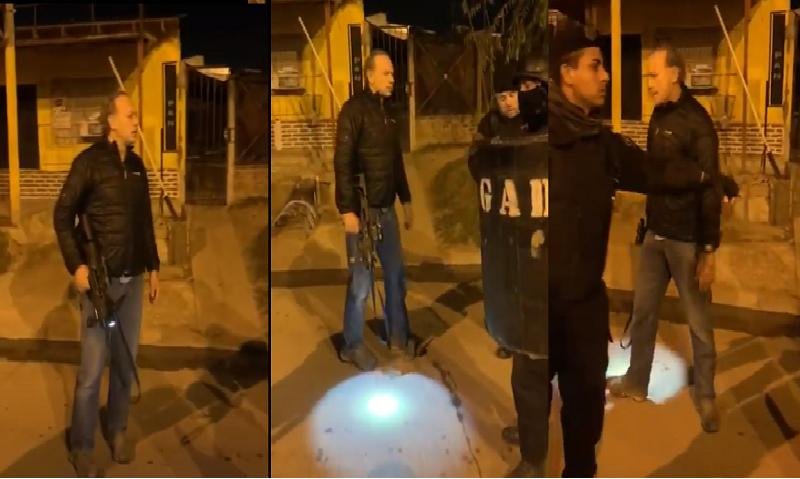 Una filmación que se filtró lo muestra portando un arma larga, en plena acción y sin barbijo, a pesar de que en el distrito su uso es obligatorio desde el mismo inicio de la pandemia COVID 19. “Que nadie le pregunte nada, ¿está?” se oye ordenar al Ministro.