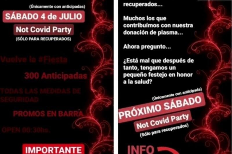 En los últimos días trascendió públicamente una convocatoria por redes sociales a participar de una fiesta clandestina denominada “Not Covid Party” y dirigida a pacientes recuperados del virus Covid-19, el próximo sábado 4 de julio, en lugar a acordar con los potenciales concurrentes.